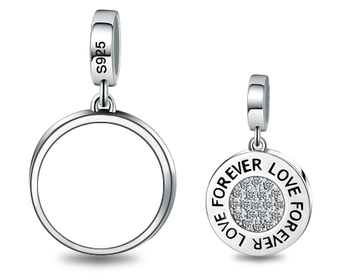 Our Sterling Silver Forever Love Charm is the perfect canvas for the photo of those you care about most.Decorated with shining crystals on the circle pendant.Makes a great gift for birthdays, anniversaries, graduation or any special event.