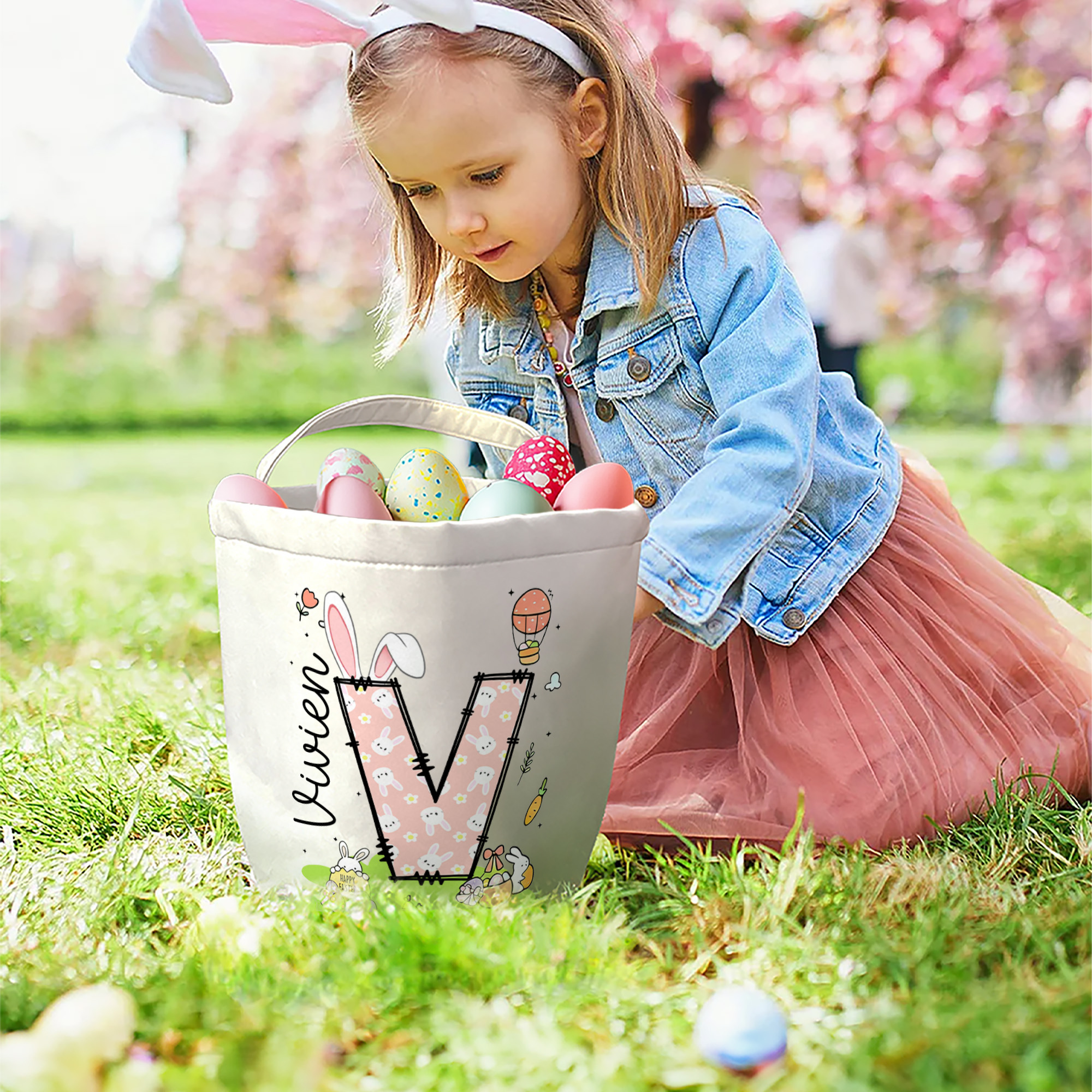 | Style | Custom Name Polka Dot Bunny Ears Alphabet Easter Basket |