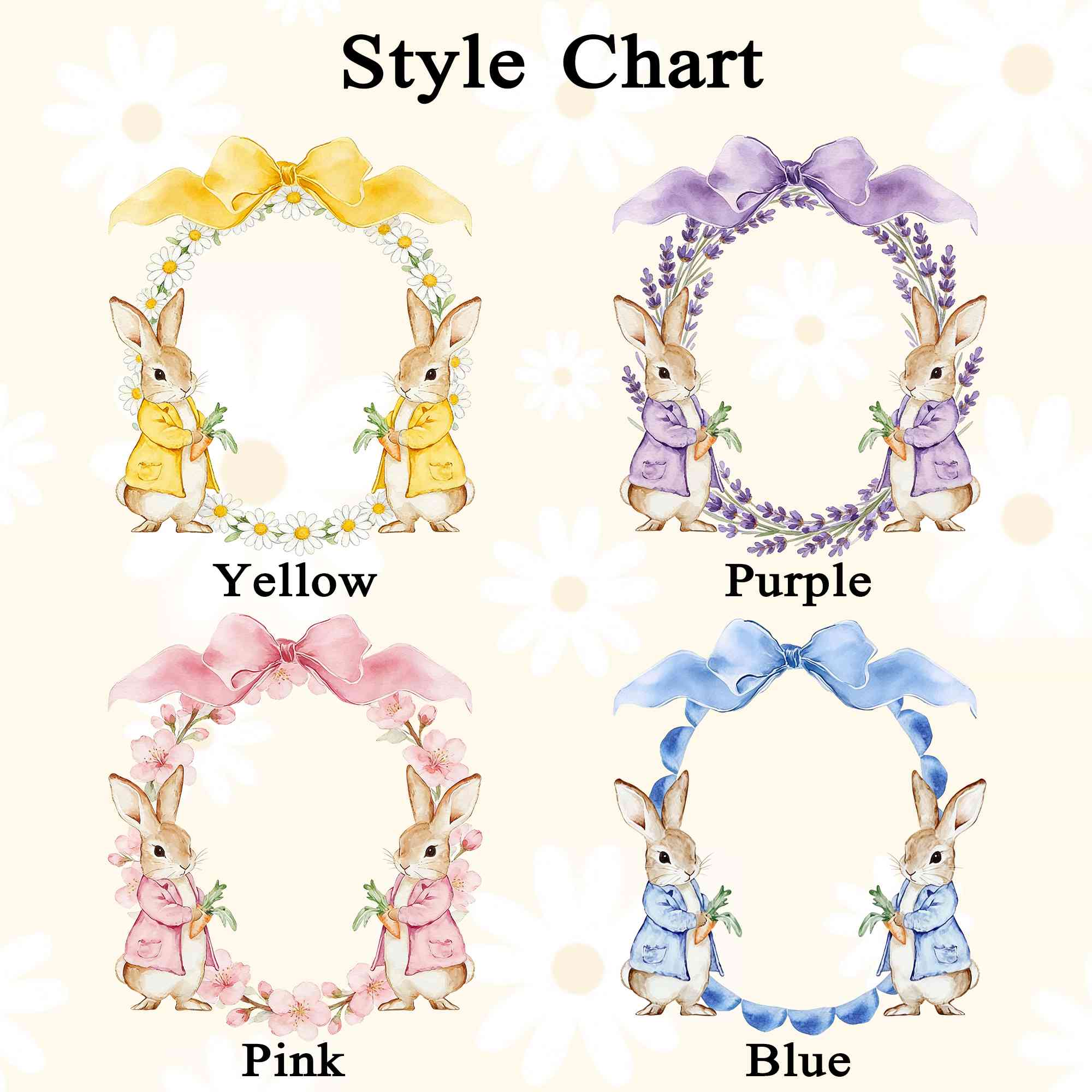 | Style | Custom Name Peter Rabbit Bow Wreath Alphabet Easter Gift Bag with Pink Bow Ribbon |