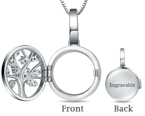 This unique personalized photo memorial jewelry lets you upload a favorite photo of precious family members, which will be embedded inside a beautiful Family Tree Locket decorated with green shiny diamond. You can custom engraving on the back as your need. What a beautiful way to express your love for your cherished family!