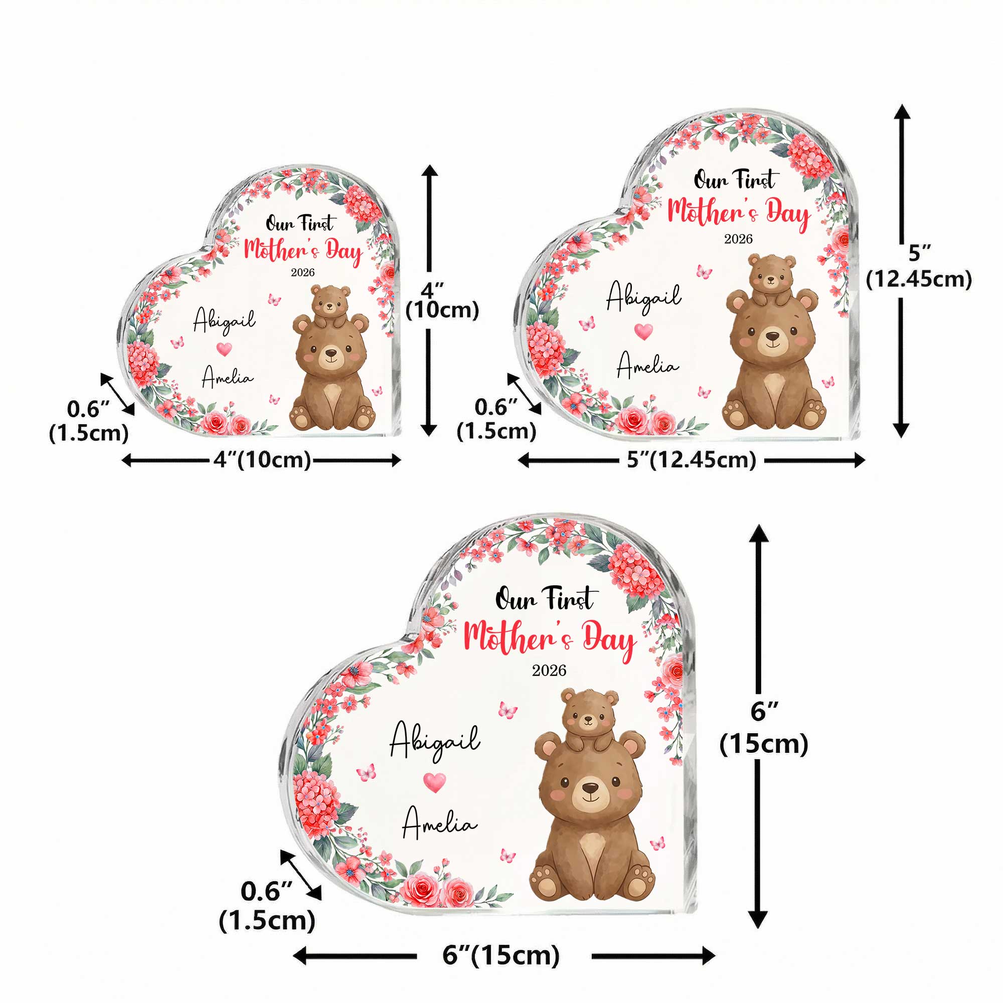 | Style | Personalized Cartoon Animals 1st Mother's Day Heart-Shaped Plaque with Names & Year |