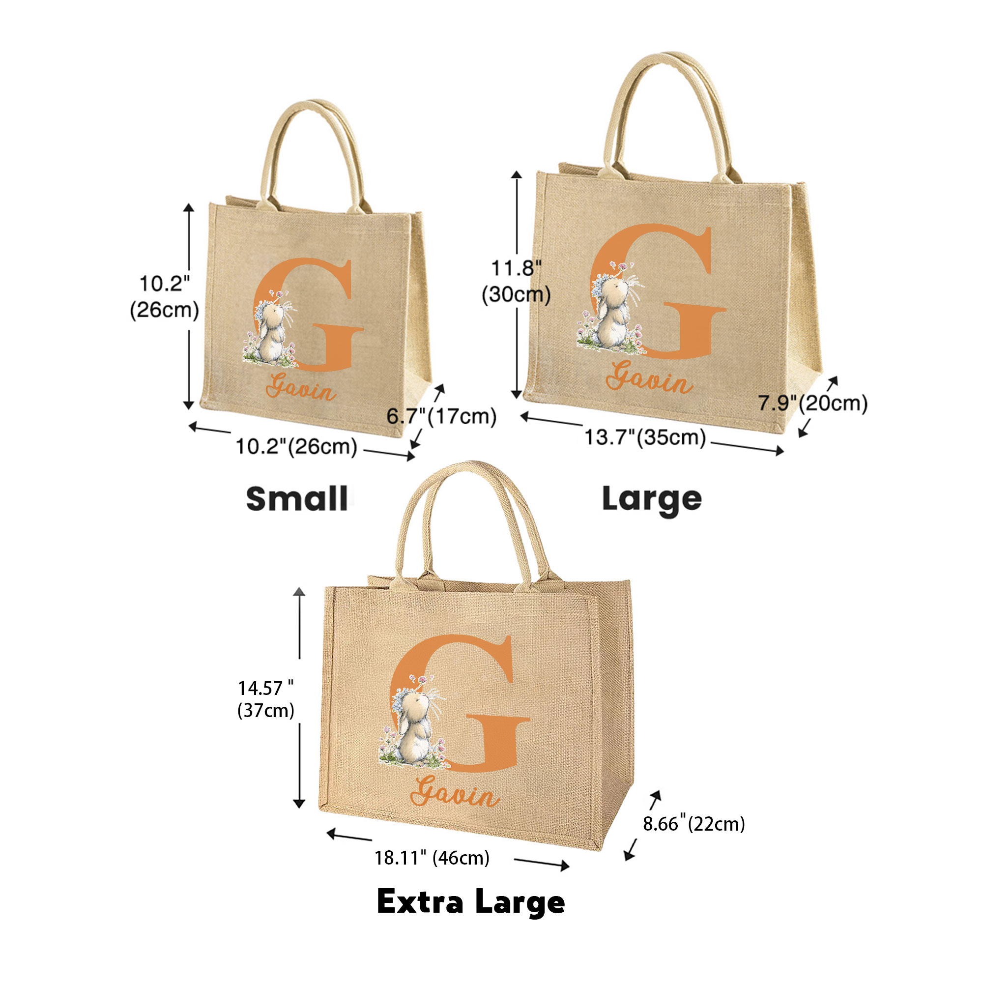 | Style | Personalized Name Floral Bunny Alphabet Tote Bag |
