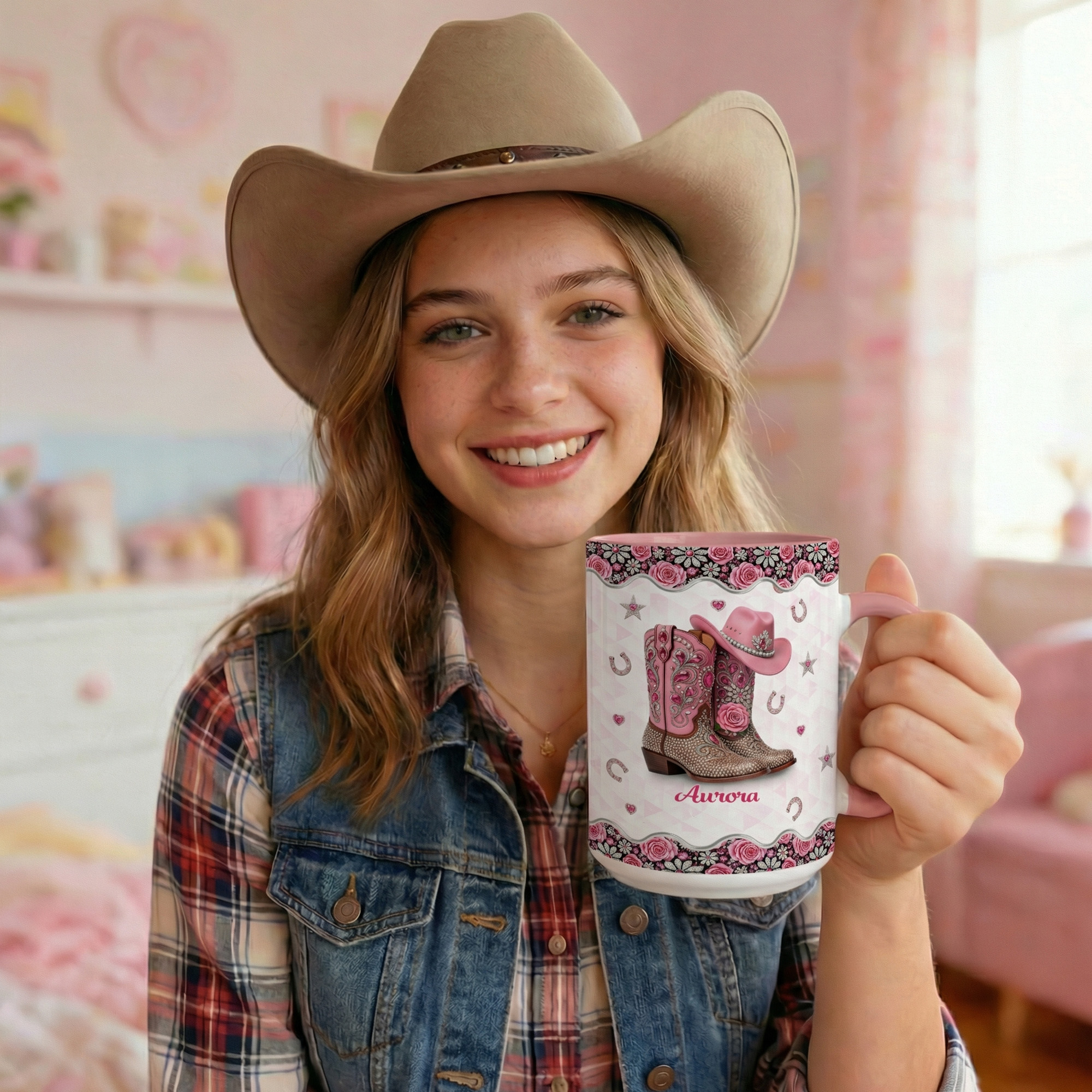 | Style | Personalized Name Rhinestone Cowgirl Hat & Boots Mug |