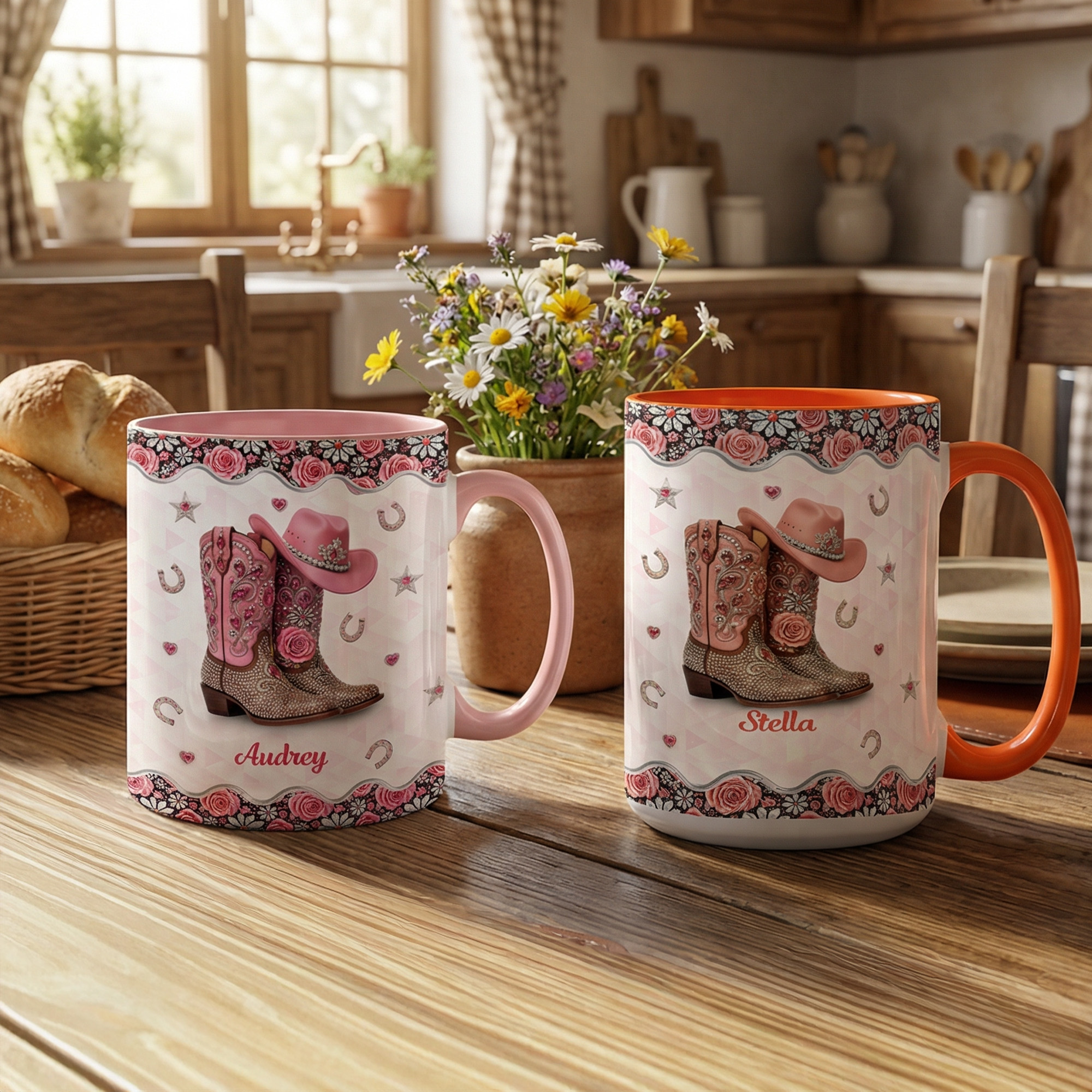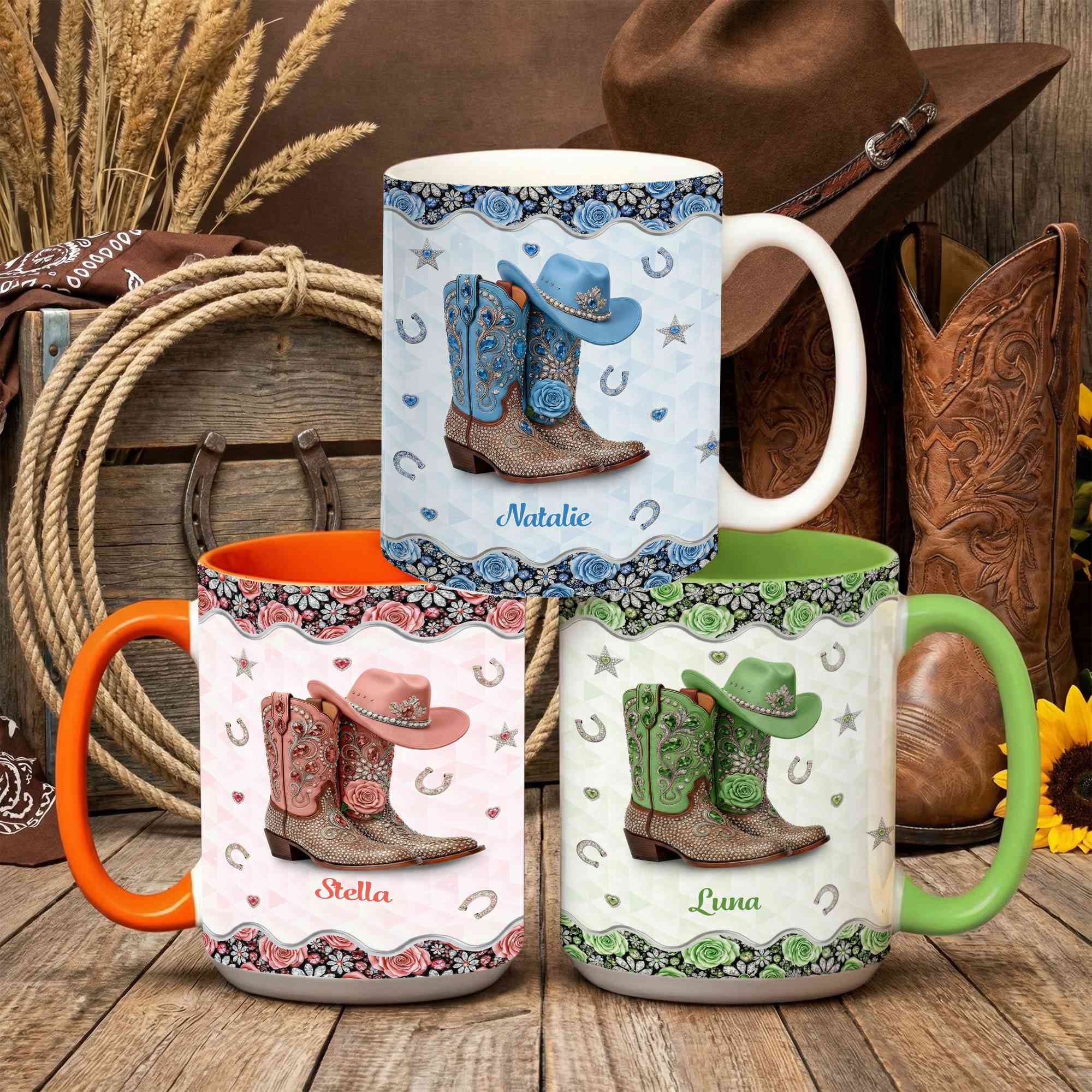 Personalized Name Detail - Add a custom name to create a one-of-a-kind mug that feels personal and meaningful. The name is beautifully integrated into the design, turning an everyday coffee cup into a special keepsake that reflects the owner's personality and love for western style.