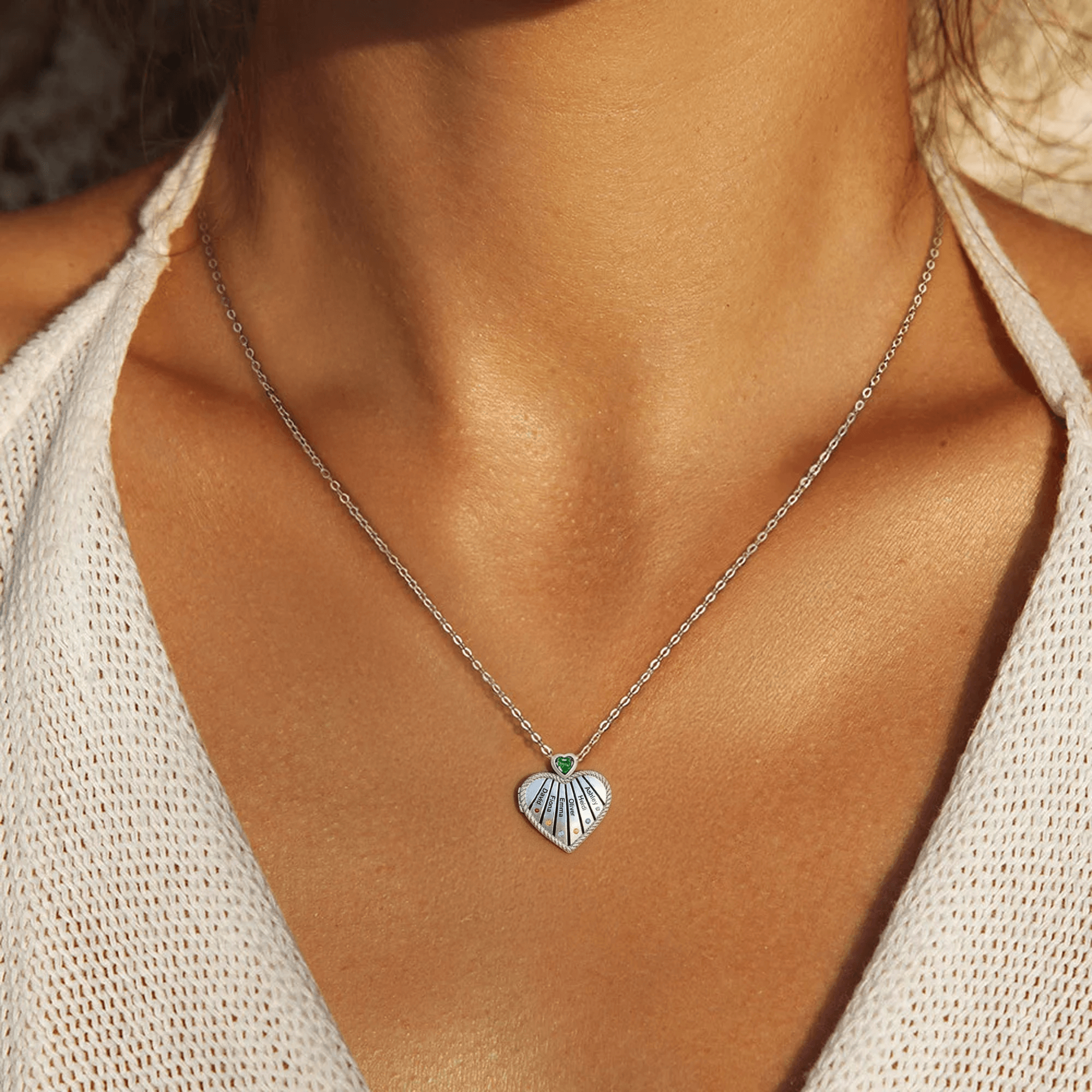 Heart Locket Design - This dainty heart-shaped necklace carries a classic locket style that symbolizes love, family, and close connections. The delicate heart frame paired with sparkling birthstones creates a soft and elegant look that feels both personal and timeless.