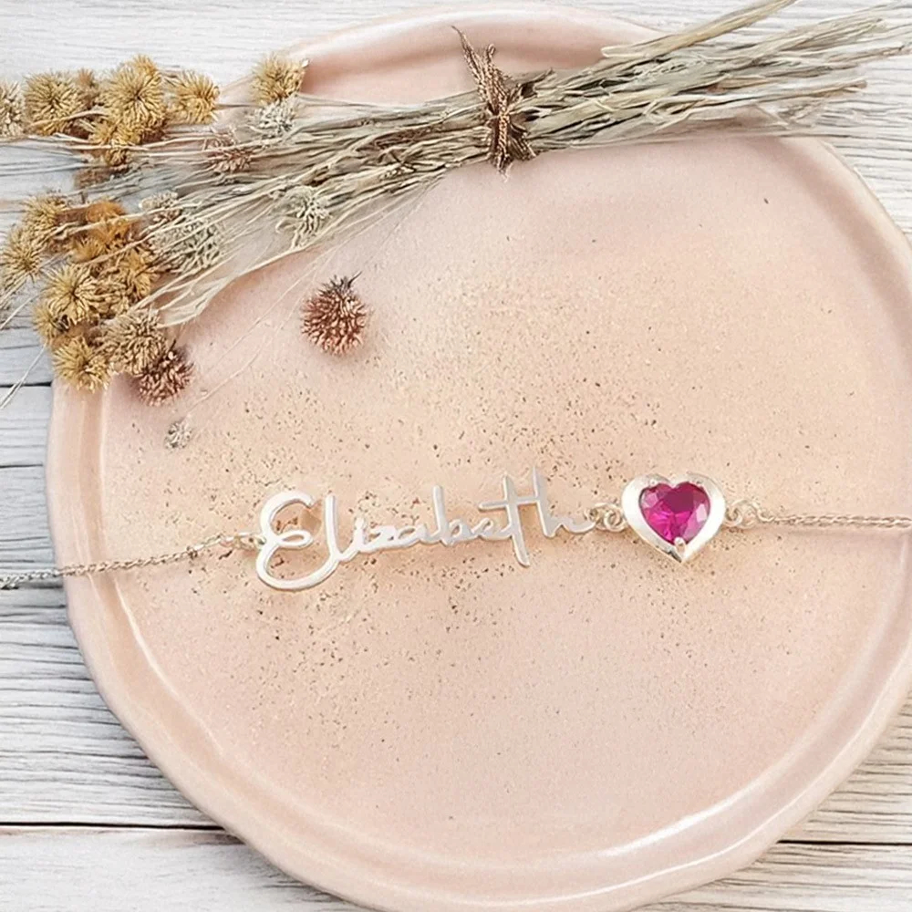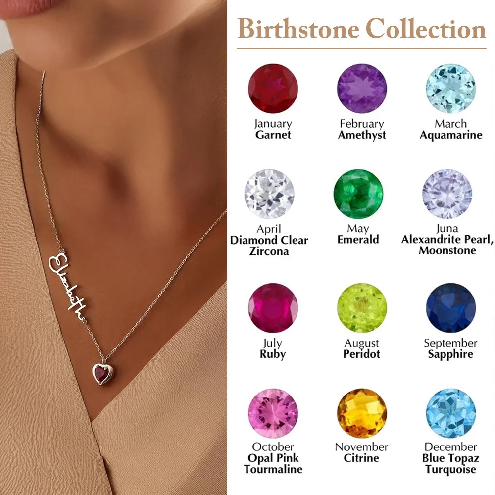 | Style | Personalized Sideway Name Necklace with Heart Birthstone |