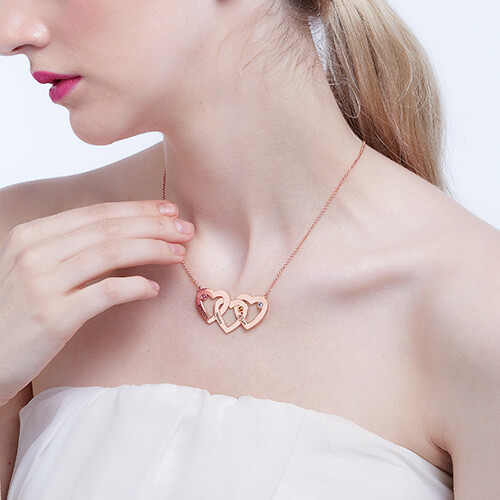 We have found the perfect gift for moms everywhere, the Intertwined Hearts Necklace with Birthstones!Now you can engrave up to three hearts, as well as choose a birthstone for each heart. Moms can keep their kids close no matter how far they are. Even if you are not a mom, you will still love this necklace! Inscribe the things that make you think about love!