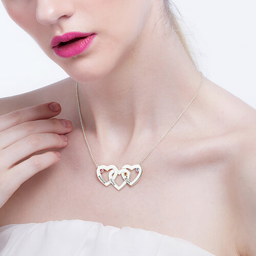 We have found the perfect gift for moms everywhere, the Intertwined Hearts Necklace with Birthstones!Now you can engrave up to three hearts, as well as choose a birthstone for each heart. Moms can keep their kids close no matter how far they are. Even if you are not a mom, you will still love this necklace! Inscribe the things that make you think about love!