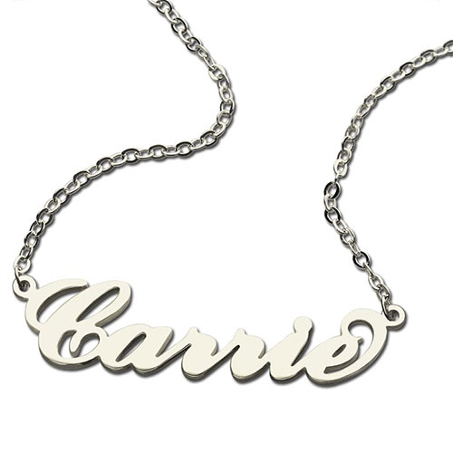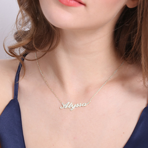 You can put any name or word you want on this stylish name necklace. Get one for yourself and for a friend or family member. This name necklace is made out of 925 Sterling Silver and hangs on a Sterling Silver Chain. This necklace is also available in 18K Gold-Plated and Rose Gold.