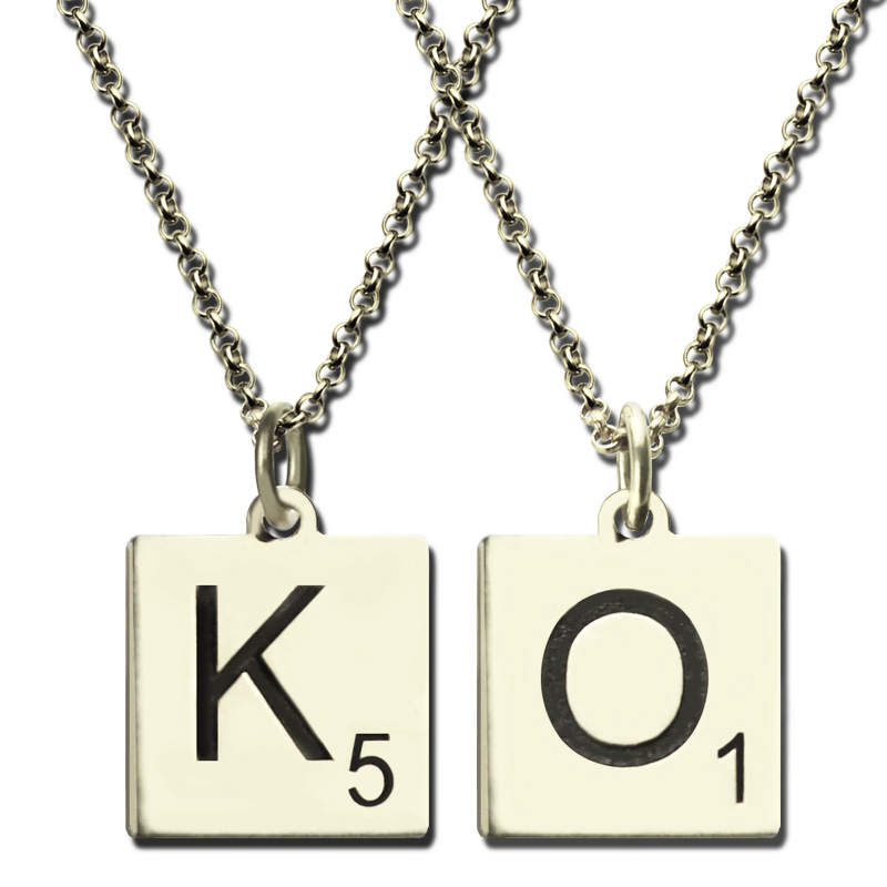 Scrabble Initial Letter Necklace Sterling Silver - How much do you love Scrabble game? Now is your time to personalized a scrabble necklace. Select your favorite letter to wear. Many celebrities love this fun fashion trend, and you can see it featured in many television shows.