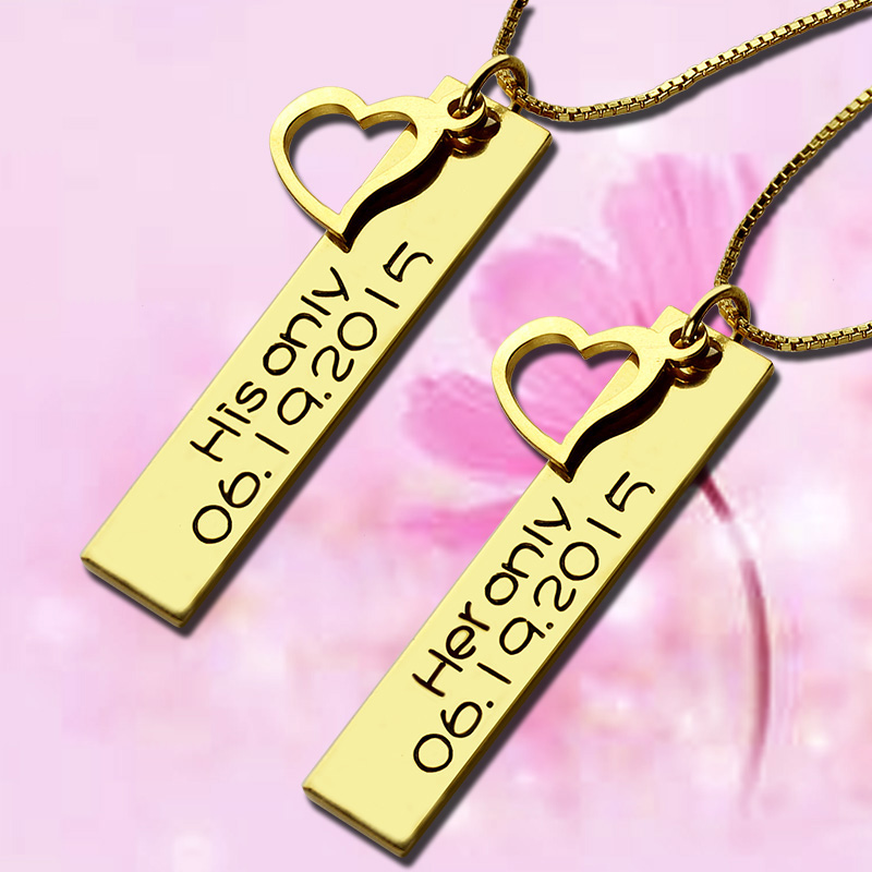 Couples Bar Necklace Engraved Name & Date 18K Gold Plated - Name bar necklace are one of the hottest jewelry trends this year! Also couple's necklace is a perfect expression of your special bond.Our new personalized couples vertical bar necklace will make you part of the trend and make your love to be forever.