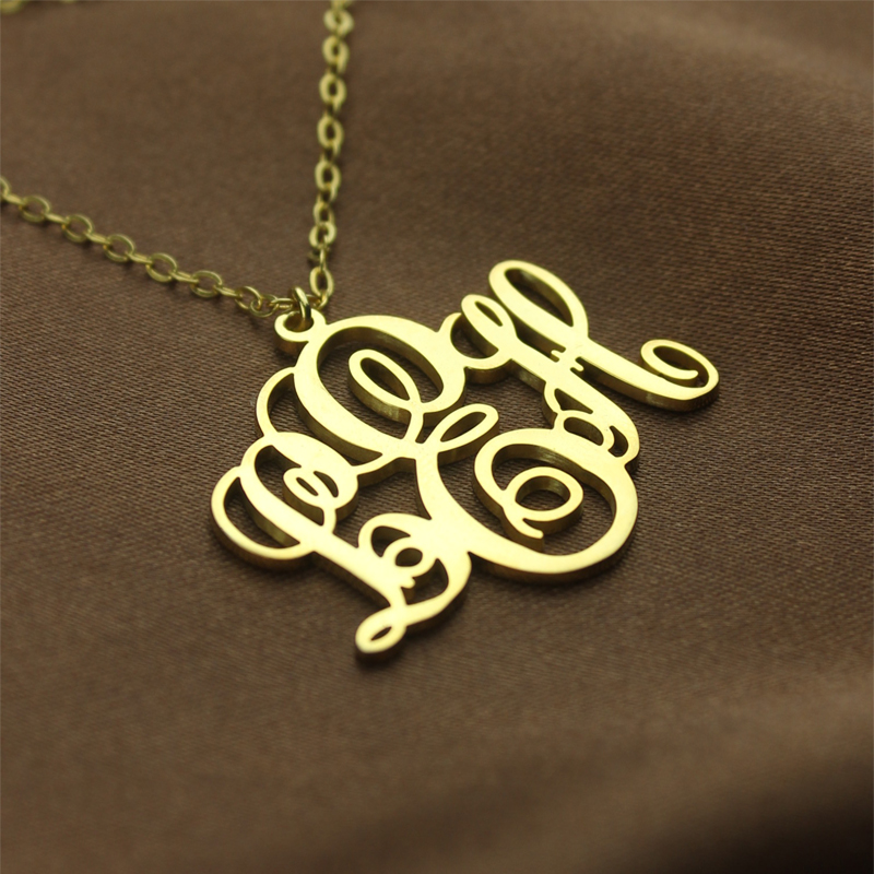 1. A monogram necklace is typically structured with the last name as the large initial in the center, first name initial on the left, and middle name initial on the right.