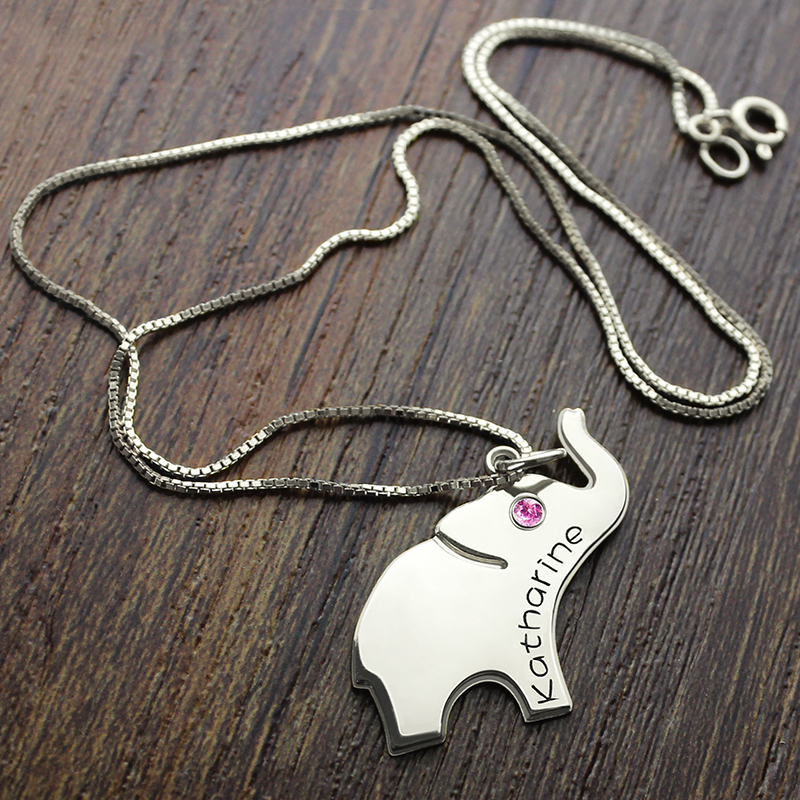 Good Luck Gifts - Elephant Necklace Engraved Name - Elephants are one of the oldest symbols of good luck.Where the good luck elephant necklace yourself, or send this good luck elephant charm necklace to someone you love.