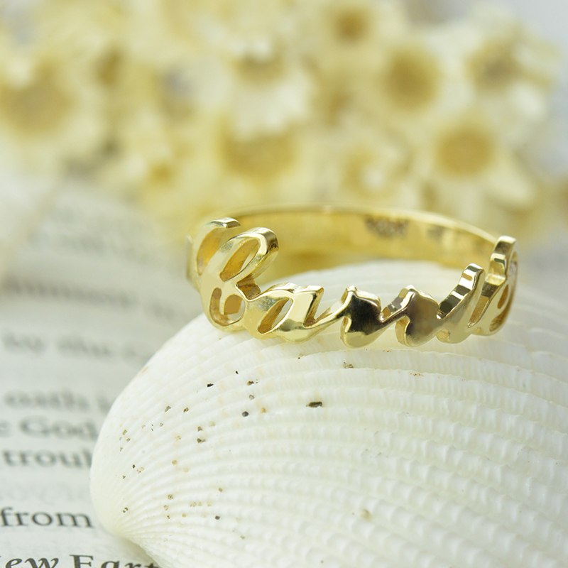 Custom Carrie Name Rings 18k Gold Plated - Perfect as a fashion statement this cut out name ring will showcase your name or name of someone you love.Our personalized Carrie style name ring is a stunning and thoughtful gift for a friend, relative, or loved one.