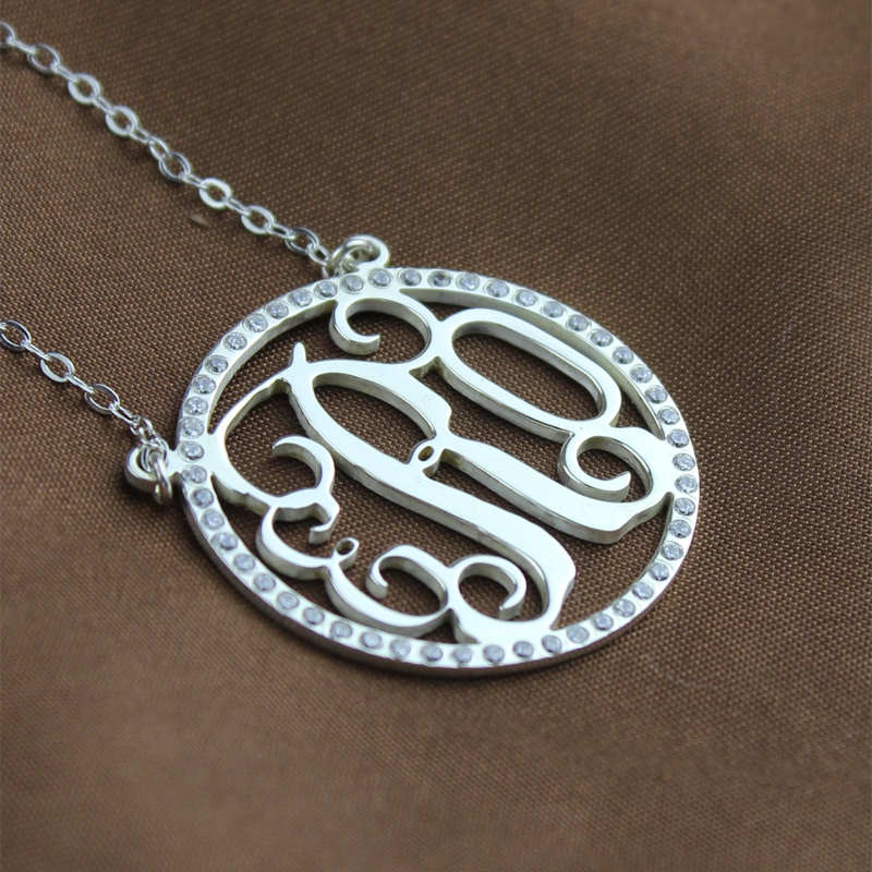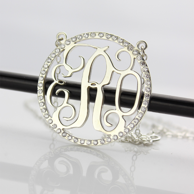 1. A monogram necklace is typically structured with the last name as the large initial in the center, first name initial on the left, and middle name initial on the right.