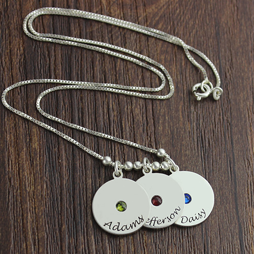 Mothers Gift - Mother's Disc and Birthstone Charm Necklace - Moms love anything that celebrates their children, which is why they are sure to love Mom Jewelry - Disc Children's Name & Birthstone Necklace. Engrave up to Five Discs with the names of the children and include a birthstone for each charm. It is a great gift for mom any time of the year, including birthdays, Mother's Day, or Christmas. Any mom is sure to love and appreciate this necklace and wear it all the time.