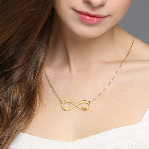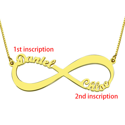 Gifts For Her - 18k Gold Plated Infinity Necklace Double Name - Infinity Name Necklace provides the best way for you to show off what the word forever means to you. You can get up to two names or words on each loop of the infinity symbol. This is the perfect personalized infinity necklace to wear. Get your name and your significant other on this name necklace. This Infinity Name Necklace is the perfect accoutrement to any outfit, day or night, business or casual.This name necklace is a perfect gift for yourself or any family member, friend, or significant other for any special occasion, including birthdays and anniversaries.