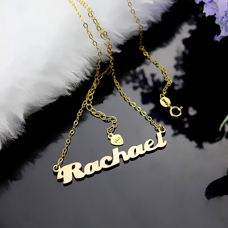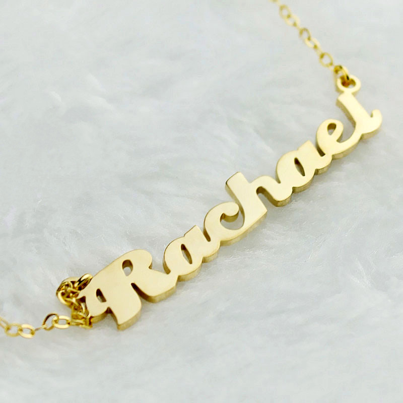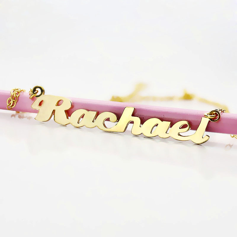Adorn your neck with an elegant necklace displaying your name. We will custom-make it with the name or word of your choice (up to 10 letters). The 18k Gold Plated Silver Puff Nameplate Necklace has a lustrous design to give you a radiant and fresh look.