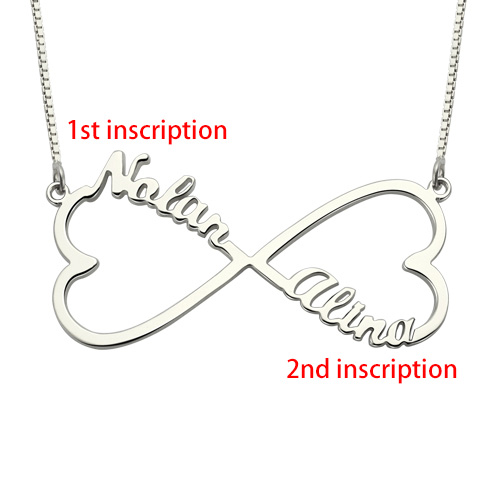 Personalized Heart Infinity Name Necklace - Light gives life to a room and diamond gives life to jewelry.You're sure to adore the lovely design of this heart-shaped infinity necklace.Give your necklace a personal twist with the addition of the two names of your choice fitted along the lines of the hearts.A charming look you'll treasure forever.