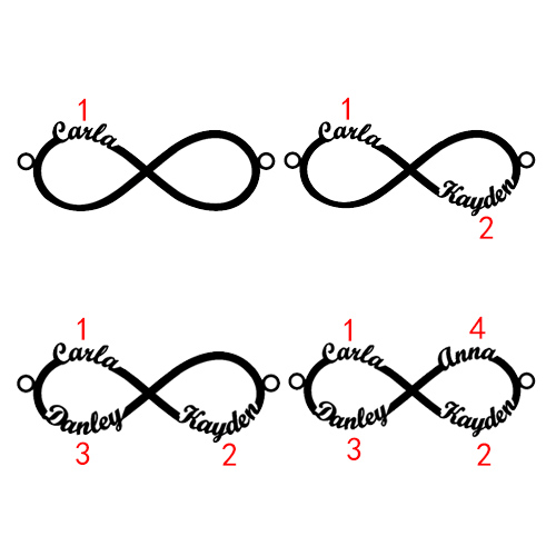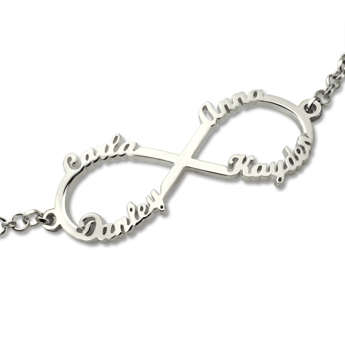 This Infinity 4 Names Bracelet provides the best way for you to show off what the word "forever" means to you. Personalize the infinity symbol with four names or words. Get creative and customize it with names of best friends, inspirational words, children, or anything else you can think of.