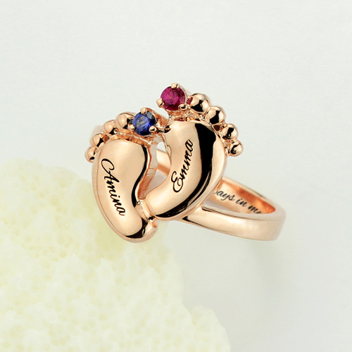 The Baby Feet Birthstone Ring is the perfect gift to mom. This special ring can be engraved with any name or date to make it extra personal.Show any phrase you want to say inside of ring.It is a perfect gift for yourself or any family member,or significant other for any special occasion.