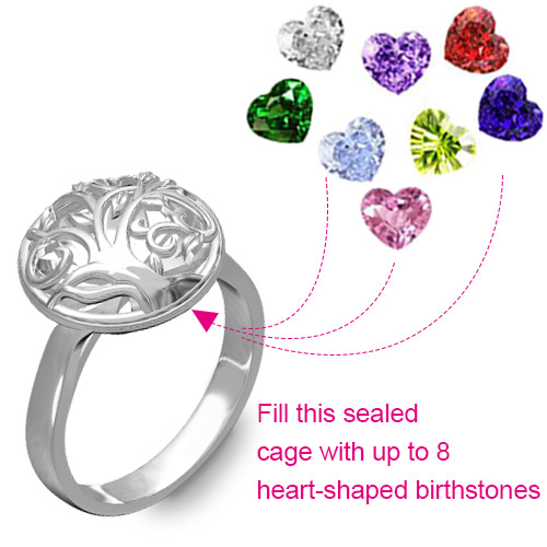 This Round Cage Family Tree Birthstone design by family tree of the cage ring, with 1-8 heart birthstones for your option, not only nice design, but also good meaning, It is best gift for mother, wife or female friends.