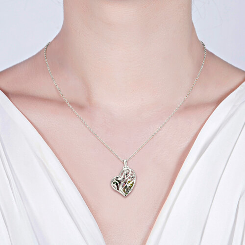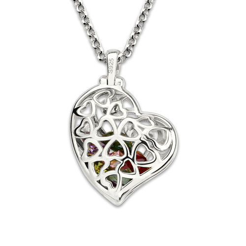 Keep the birthstones of your loved ones close to you in this Heart Cage Birthstone Necklace features an open filigree design that can display up to nine heart 5MM birthstones of your choice. This necklace is the best valentines gifts for Her.